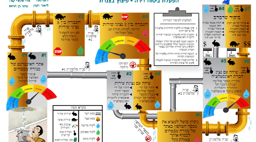 - הסטודנטים חולקו לרביעיות, בחרו תחום שירות בו הם ניתחו מושג מרכזי מהקורס ויצרו 'מפת מסע לקוח' באמצעות פוסטר אשר יוצג ב'מיני כנס' במהלך הקורס.